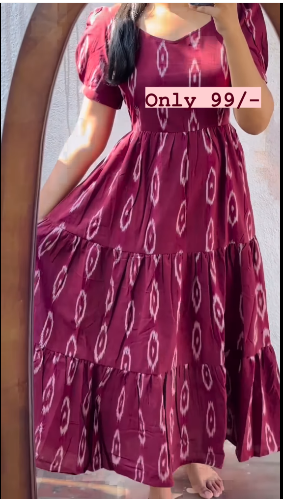 Be the first to review “Dark Pink Cotton Printed Ruffle Dress”
