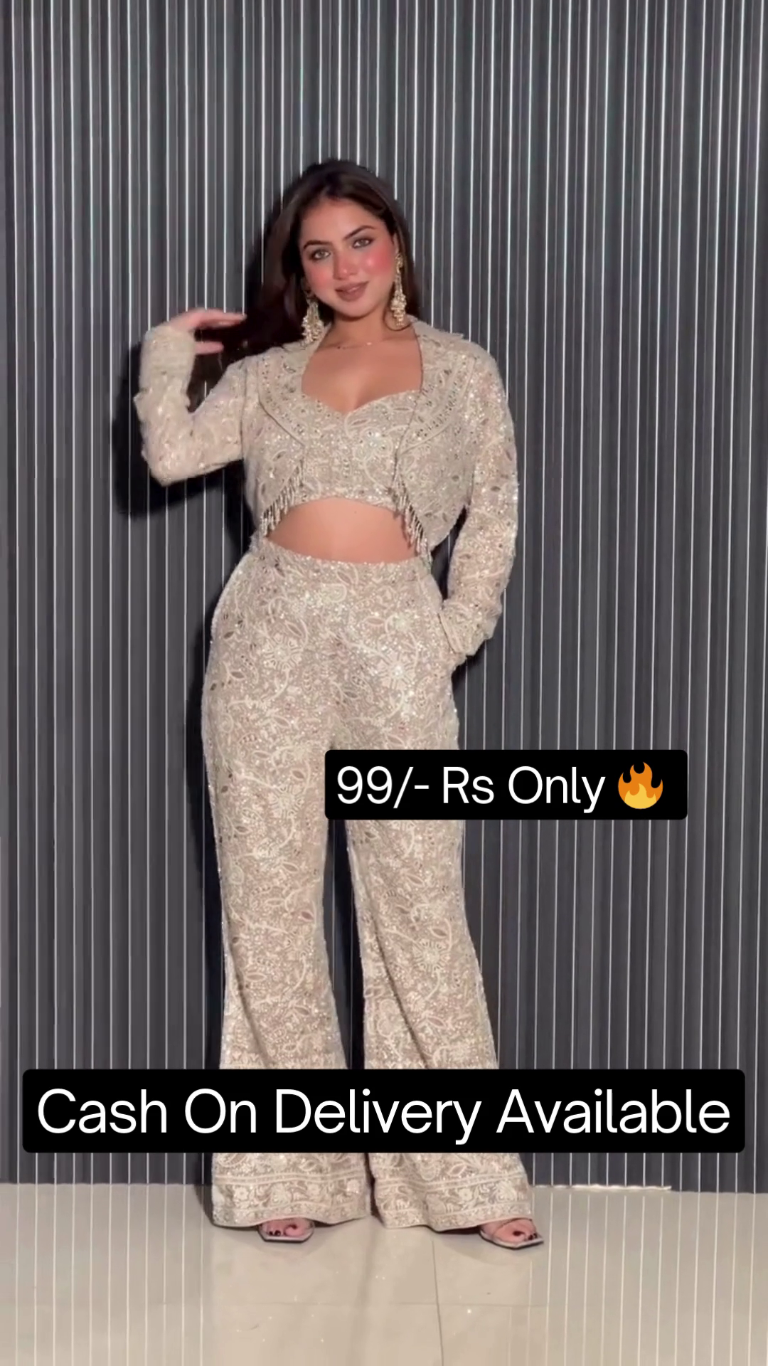 Be the first to review “Embroidered Pure Silk Crop Top & Bell Bottom Trouser”