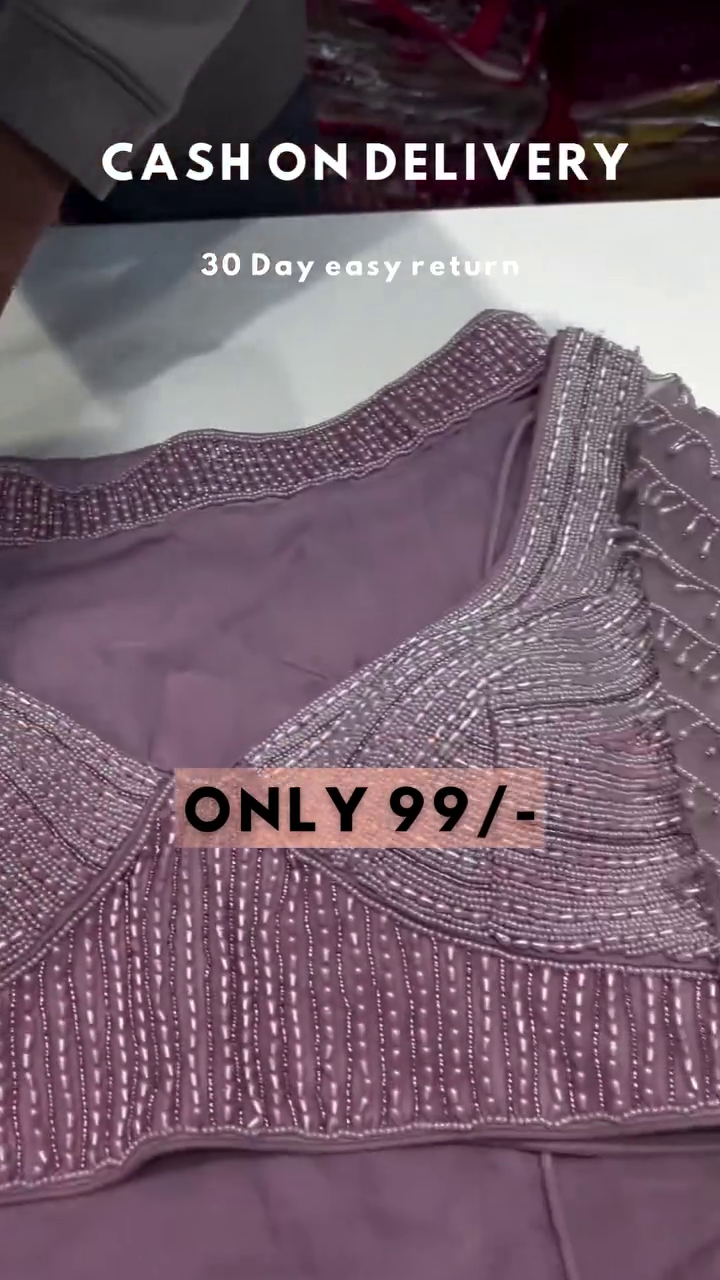 Work : Sequins Work With Lace Border